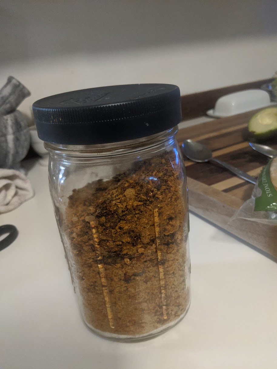 The tostadas were pretty good, but there are a few changes I would make next time. First, I would use more butter in the wok and totally thaw the Awesome Grounds. When I bought the Awesome Grounds at the market the product was in the cooler but not frozen. I put the product in the freezer because I knew I wasn't ging to use it the day I went to the market and I didn't know if it was the kind of thing that spoils quickly if not used right away. I have frozen other Sweet Earth products without compromising the product. It was the same with this product. I'd use it thawed next time, however, for the purposes of browning. When the moisture started to come out of the product as it melted in the wok, it mixed with the butter and the grounds never really got crispies like I wanted them to. I think this is an issue of chemistry and water distribution in the product. When I have used similar products in the past I have found that the thawed products gets crispies more readily. I also think using twice the amount of butter would help with the browning process as well. The other thing I'd change is I'd not use the BBQ rub I made for this recipe. In stead I would break out the all the different chillis and spices and salt and alter the balance of ingredients.