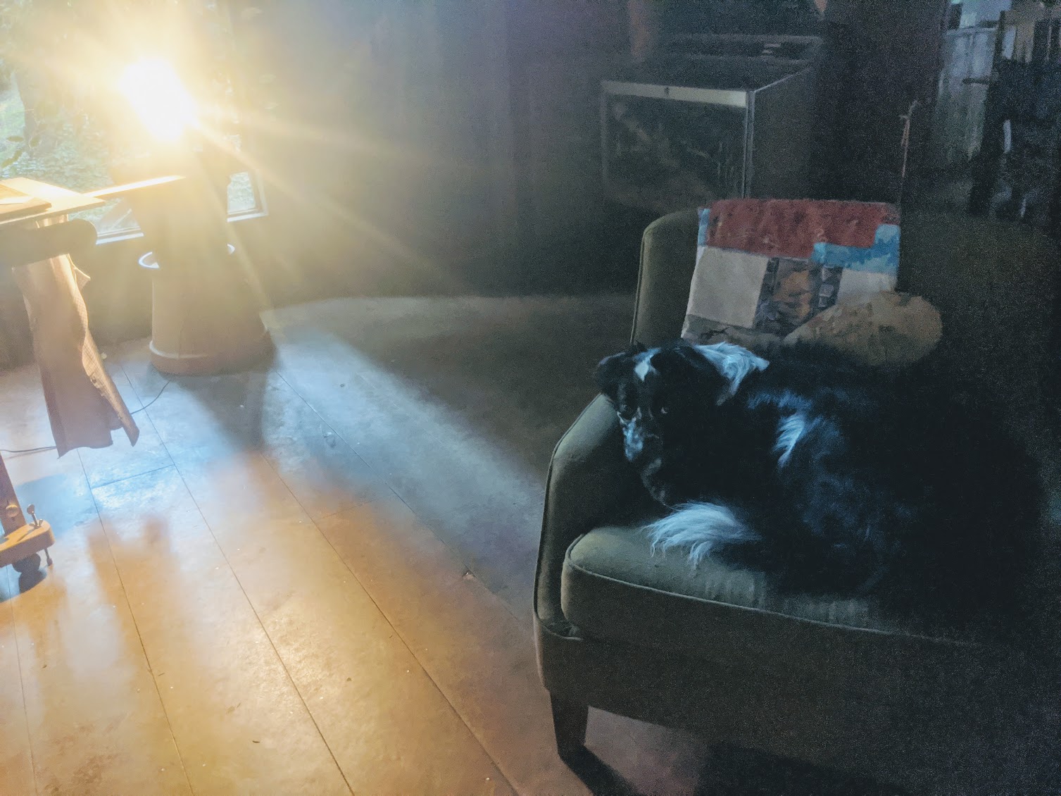 Brody does NOT like when I paint and that little stinker knows I'm getting ready to do some serious work because of the orientation of my easel and the arrangement of supplies. Ah...the difference between cats and dogs. Kitties always enjoy when I'm working. They love to sit around and watch and even offer critique. I know when kitties like what I'm working on because they will come over and try to snuggle with the Art. If they don't like what I'm working on they will look at it then walk away flicking their tail at me. Brody...well Brody doesn't like me to do ANYTHING other than give him attention. So, painting is in particular a horrible offense to him. He knows that while I am painting he MUST be outside because he is so disruptive to the process. I'm not sure what all he has planned, but I know he's got something under his collar because this morning he left a steaming pile by the easel. I guess you can't please everyone. Omar wasn't amused. He almost stepped in it.