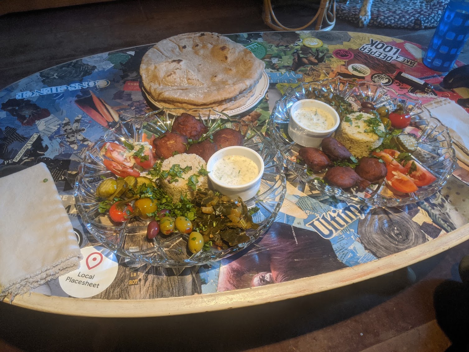 And of course, a person needs to eat. As usual, I've trying new techniques and making lots of tasty meals for Omar and I. This Mezza Platter with homemade flat-bread was particularly delicious: